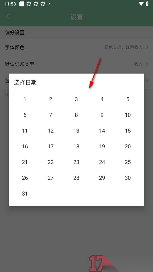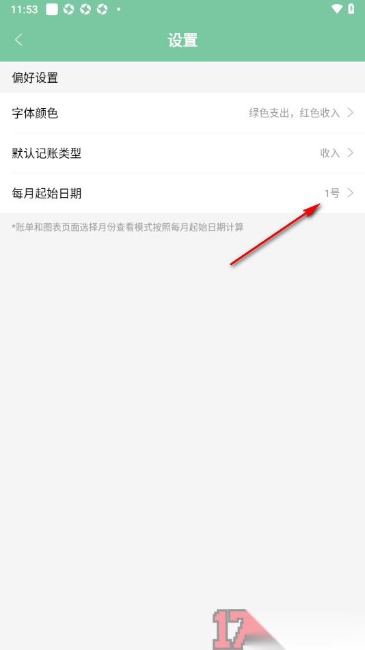 轻便记账app是一款专门用来记录账单数据的应用软件,支持将所涉及到的工作账单、个人账单等相关信息添加进来即可记录,便于后期可以通过该应用查看自己的支出和收入情况,在该应用中记录账单时可以设置一下每月的起始日期,之后到了该日期之后就会自动的统计上个月的账单情况,但是有的用户并不知道在哪里设置每月起始日期,这就需要打开应用设置窗口找到其中的每月起始日期功能即可更改设置,支持将日期设置为每月1号、2号、3号或者是其他的时间等,其中还可以设置字体颜色、默认记账类型等。