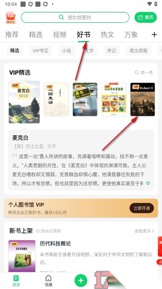 1.当我们进入到个人图书馆app软件之后,在页面上点击打开【好书】选项,再点击一本自己喜欢的书籍即可进入。