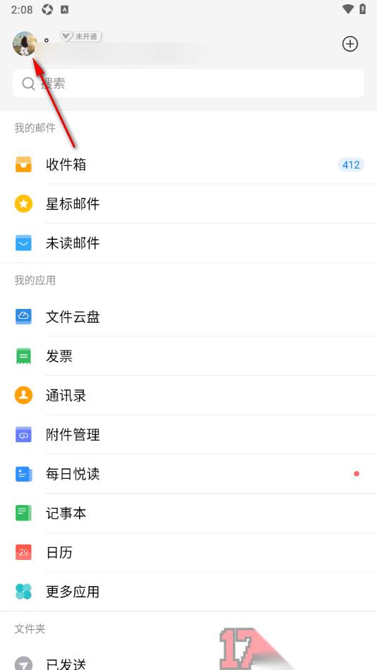1.当我们将手机上的qq邮箱点击打开之后,在打开的页面上方的位置将用户头像按钮点击打开,如图所示。