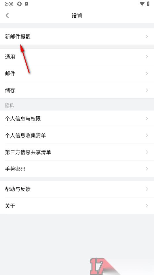 3.来到当前打开的窗口中即可查看到显示的多种功能选项,找到其中的【新邮件提醒】选项点击打开即可进入。