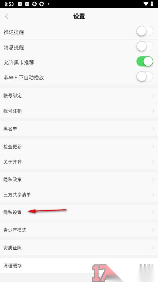 3.随后页面上会显示出多种多样的功能内容,找到其中的【隐私设置】选项,将其点击打开即可进入设置。