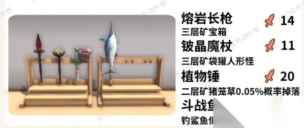 金垦小镇Dinkum中的武器有木质球棒、鳄鱼尖牙棒、火焰棒、基础长矛、铜矛、铁矛、基础锤子、铜锤、铁锤、平底锅、战斗铲子、糖果手杖、气球剑、战斗扫帚、狂热粉丝手指、弹弓、高级弹弓、骨弓等等,下面为大家列举具体的各个武器以及攻击数值。