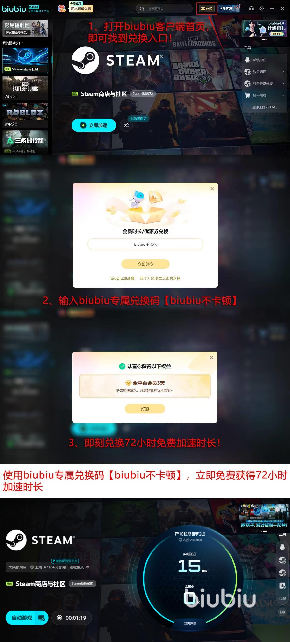 正因为拥有这种加速效果,biubiu加速器和pubg的明星冠军选手xdd达成了合作,做为fps游戏职业选手他,对网络的要求是非常高的,这就是说连他都愿意使用这款加速器,可以想象一下效果到底有多优秀,可以说不管是什么类型的游戏玩家都是可以通过这加速器进行网络加速,获得一个完美的游戏体验的,这还只是加速效果好而已除了这个外福利也是非常棒的,拥有【biubiu不卡顿】兑换码兑换72小时的免费使用时长的福利活动和新用户注册获取24小时免费加速时长,总共是96小时使用时长的福利活动,可以说不管从哪方面来看都是一款很好用的加速器。