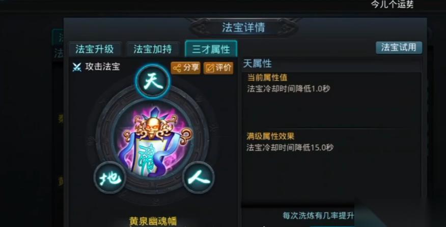 系统通常设有类似祝福值的设定,即升星失败可能会积累幸运值,从而提高下一次的成功率。升星带来的收益并非线性,最重要的节点在于第1、3、5星。达到1星时,会解锁天字位属性,效果是减少法宝的技能冷却时间;达到3星解锁地字位,能直接强化法宝自身的主动技能效果;而达到最高的5星时,则会解锁人字位,提供一个随机的强力被动效果。洗练系统,允许玩家消耗一定资源来重置这些属性。