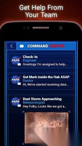 在游戏当中,火星宇航员Mark Watney在小组紧急撤退火星的过程中因为意外受伤,与他人失散,并被误认为已经死亡,其他队友飞走了,他却孤零零地留在火星,而玩家作为美国航空航天局的通信专家,要和此人进行通话交流,最终帮助他成功逃离火星。