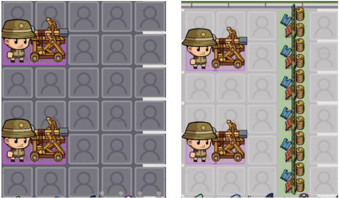 相同的,前排“士兵”也可以无死角攻击所有路的僵尸