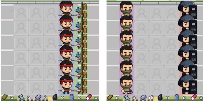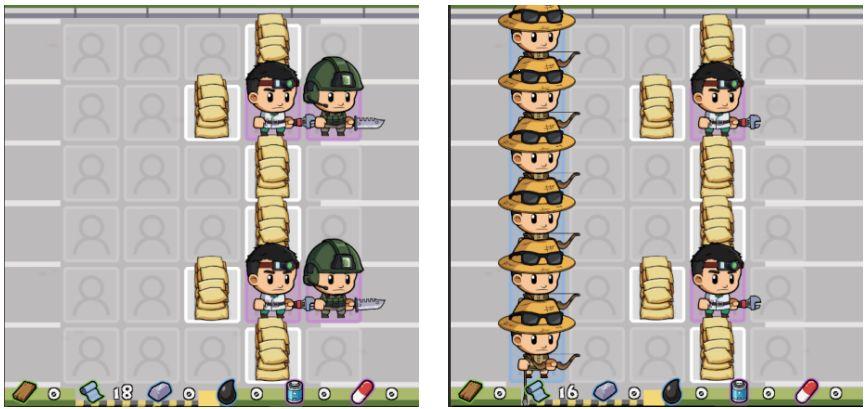 这样摆放两个“橙色士兵”一般能轻松打过100左右的关卡(最好是半感染者)
