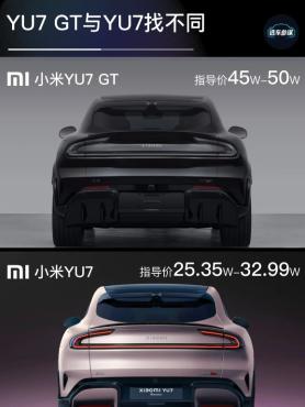 小米yu7和yu7gt的区别 小米yu7gt参数配置