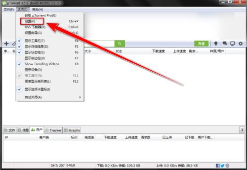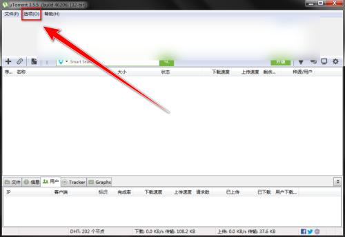 第一步:在uTorrent中,点击菜单栏上的“选项”。