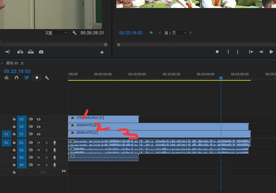 7、这样你就能在播放窗口看到多机位的素材,剪辑也很方便,用鼠标点击窗口就可以了,之后稍作修剪,希望能够帮到大家!