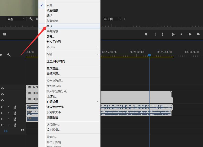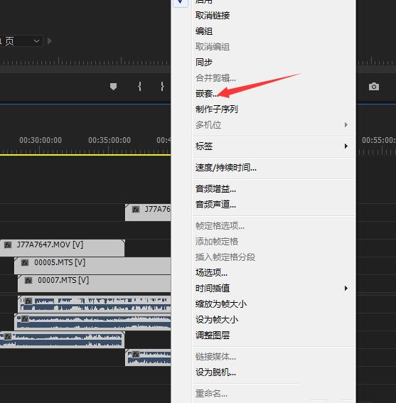5、同步后,右击选择嵌套,嵌套之后就变成一条轨道上面的素材,