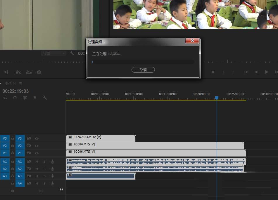 4、如图就在同步了,同步就是拍摄中间部分断的,它都能给你同步到一起,