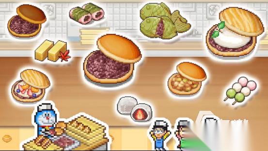 3d的像素风格所渲染,这也是由开罗公司所创作出来的,基于动画片ip所授权,您需要和哆啦a梦等多种精美的人物角色共同经营一家铜锣烧店。刚开始的店铺的规模可能并不是特别大,但是在认真管理之后就可以推动整个店铺的快速发展,在经营时,所有的流程都可以亲自操控,比如采购原材料,或者再到接待顾客等等,通过逐渐升级厨房设备设施的方式,可以扩大并提升知名度。