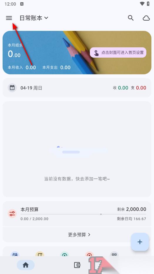 1.在手机上找到小星记账APP点击打开,在打开的页面上找到顶部位置显示的三横图标按钮点击打开。