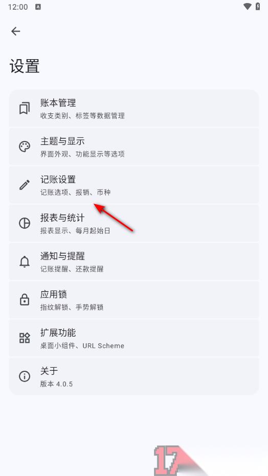 3.这时候页面上即可展示出多种功能选项,在这里需要找到其中的【记账设置】选项点击打开。