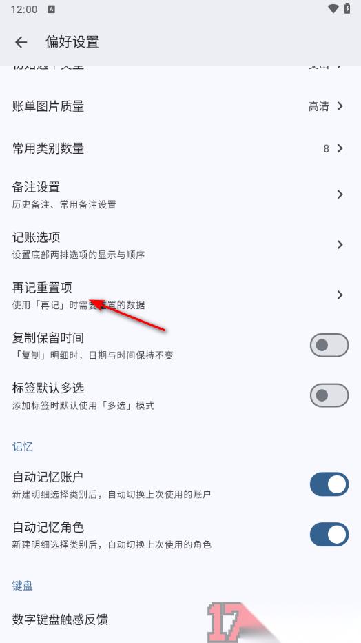 5.随后页面上会查看到多种设置内容,在这里需要找到其中的【再记重置项】选项点击打开即可弹出窗口。